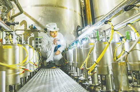 8月1日,蒙牛乳業(焦作)有限公司灌裝車間工人在巡查設備運行情況。進入三季度以來,該公司訂單不斷,各車間開足馬力忙生產,把趕訂單、快生產作為首要任務,保證市場需求,奮力沖刺三季度目標完成,為“全年紅”奠定基礎。