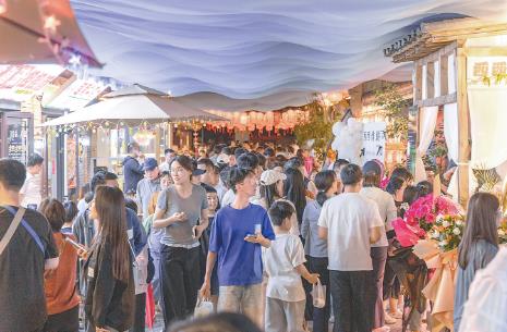 5月1日,山陽區恩州驛文化街區,假日“夜經濟”人氣火爆。