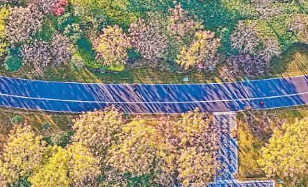 11月28日,航拍鏡頭下,山水林田湖草項目滋養的天河公園,疏朗暖陽灑落斑駁光影,市民沿步道悠然穿行,生態文明建設的成果正化作冬日里最鮮活的生態畫卷。