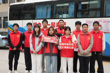 焦作工貿職業學院學生積極參與無償獻血活動場景。