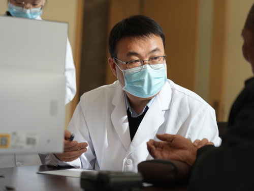 河北省中醫院脾胃病一科主任郎曉猛在市中醫院為患者把脈問診。