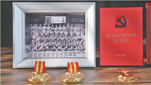 仲夏的上午,在中站區朱村街道梅苑社區張萬的家中,他的女兒張巖萍接待了我們。聽到我們的來意,她把我們領到了老人的臥室。室內溫暖而寧靜,臉龐消瘦的老人靜靜地靠在床頭,那雙布滿皺紋的手正輕輕摩挲著一枚金燦燦的“光榮在黨50年”紀念章。