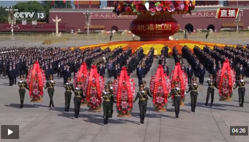 獨家視頻丨向人民英雄敬獻花籃儀式正式開始 全場高唱國歌