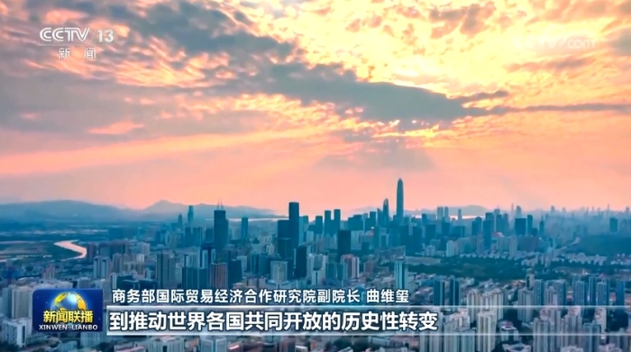 央視網(wǎng)消息(新聞聯(lián)播):習(xí)近平總書記指出,以開放促改革、促發(fā)展是我國(guó)現(xiàn)代化建設(shè)不斷取得新成就的重要法寶。黨的十八大以來,以習(xí)近平同志為核心的黨中央堅(jiān)定不移擴(kuò)大對(duì)外開放,建設(shè)更高水平開放型經(jīng)濟(jì)新體制,形成更大范圍、更寬領(lǐng)域、更深層次對(duì)外開放新格局,不斷拓展著中國(guó)式現(xiàn)代化的發(fā)展空間,也推動(dòng)了世界經(jīng)濟(jì)共同繁榮。